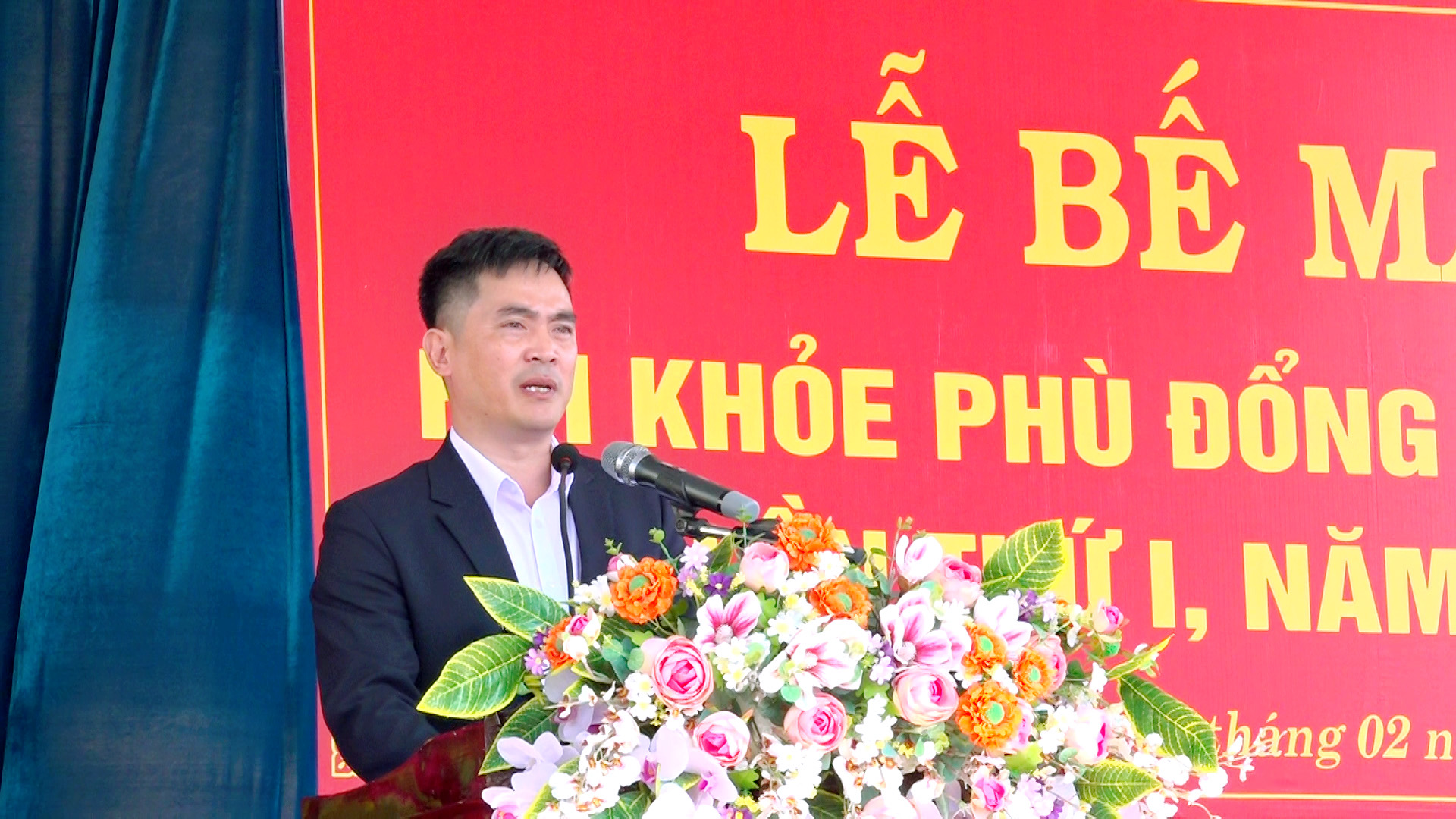 Ông Phùng Văn Chang – Trưởng phòng Văn hóa – Xã hội xã Ea Kar, Trưởng ban tổ chức phát biểu bế mạc Hội khỏe Phù Đổng xã Ea Kar lần thứ I, năm 2026