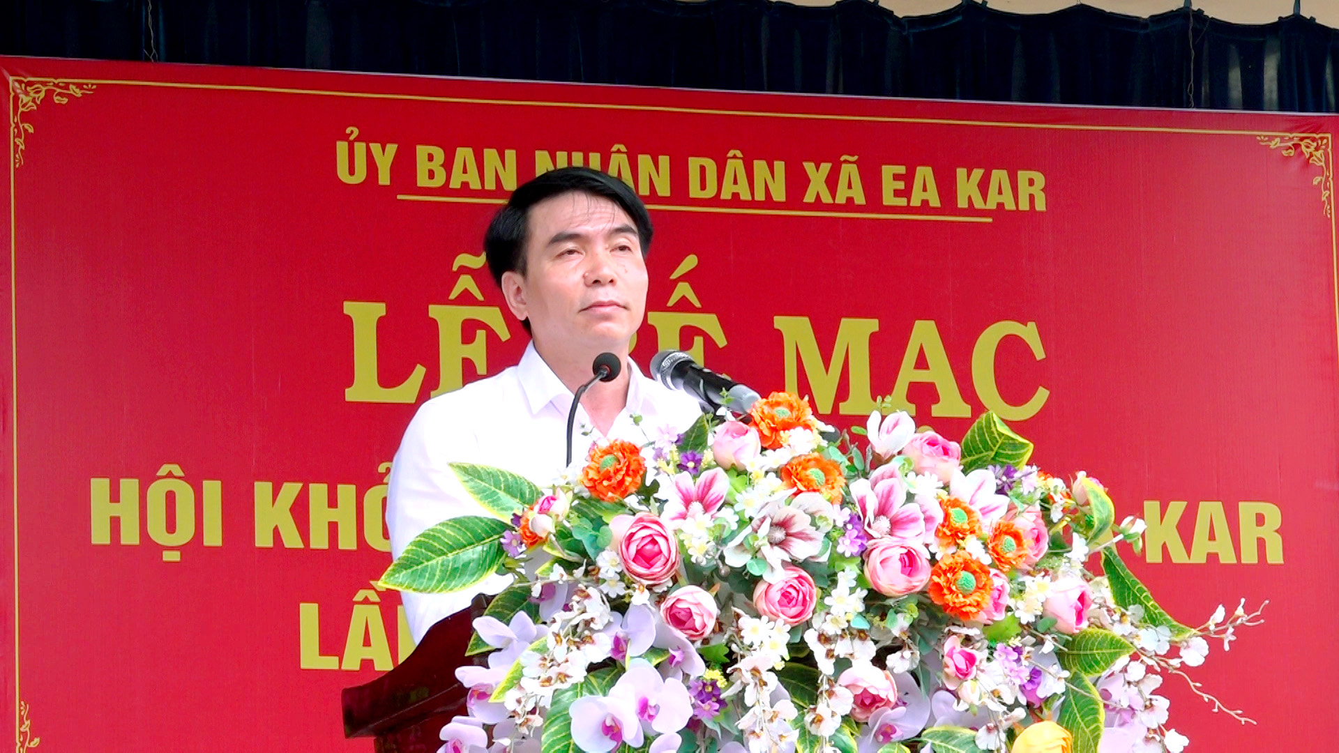 Ông Nguyễn Thanh Dương – Phó Chủ tịch thường trực UBND xã Ea Kar – Trưởng Ban chỉ đạo phát biểu tại buổi lễ khai mạc