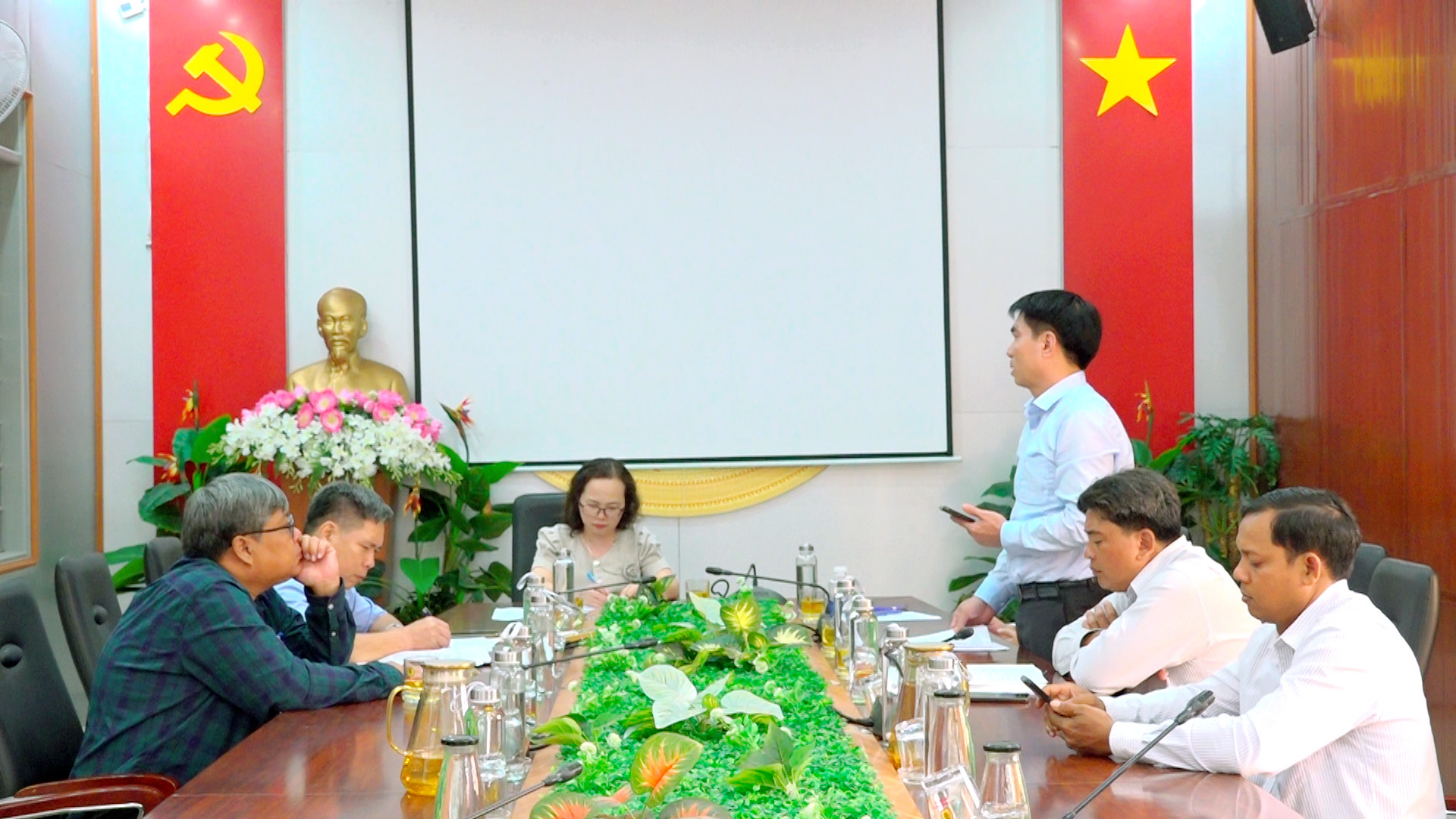 Ông Phùng Văn Chang – Trưởng phòng Văn hóa – Xã hội xã Ea Kar báo cáo công tác chuẩn bị bầu cử trên địa bàn xã