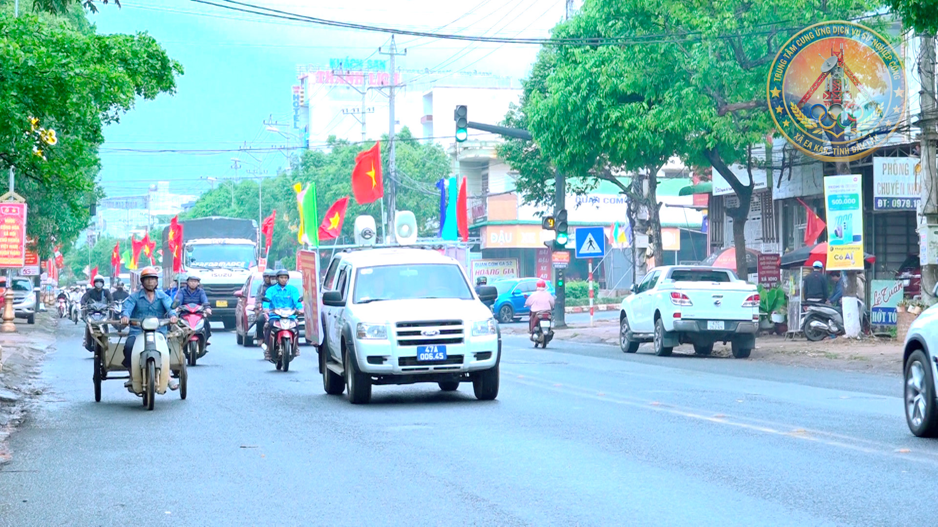 Đoàn diễu hành gồm xe cổ động, đoàn viên thanh niên cùng cờ Tổ quốc và các khẩu hiệu tuyên truyền đã di chuyển qua các tuyến đường chính khu trung tâm xã và khu quảng trường hành chính xã, thu hút sự quan tâm của đông đảo Nhân dân, góp phần tạo không khí phấn khởi hướng về ngày hội lớn của toàn dân.