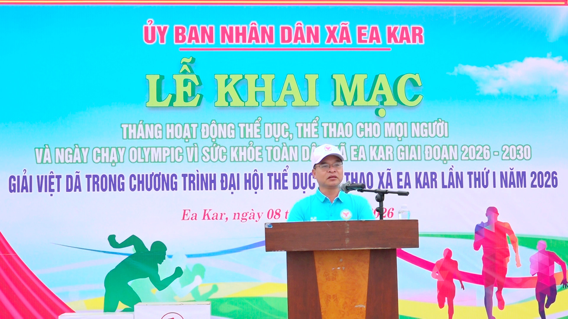 Đồng chí Nguyễn Minh Chuyền – Phó BTĐU, Chủ tịch UBND xã Ea Kar đọc lời kêu gọi người dân rèn luyện thể thao của Chủ tịch Hồ Chí Minh